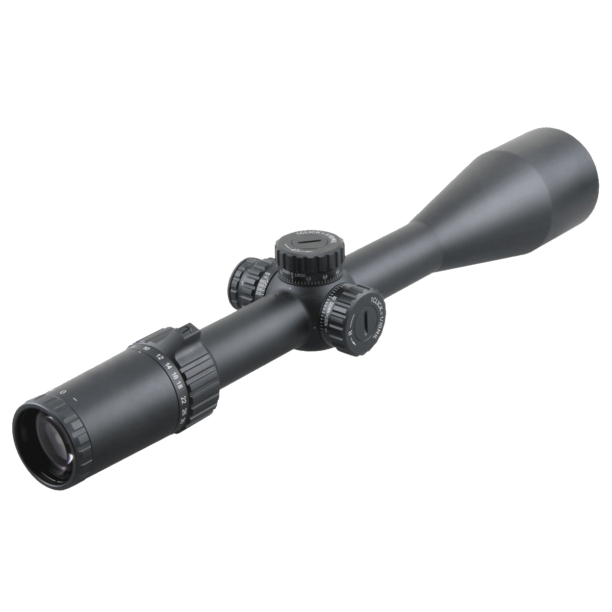 • Diamond-Clear Optics – Long eye relief with first focal plane etched MPX1 glass reticle, enhanced by German tech, with turret lock.