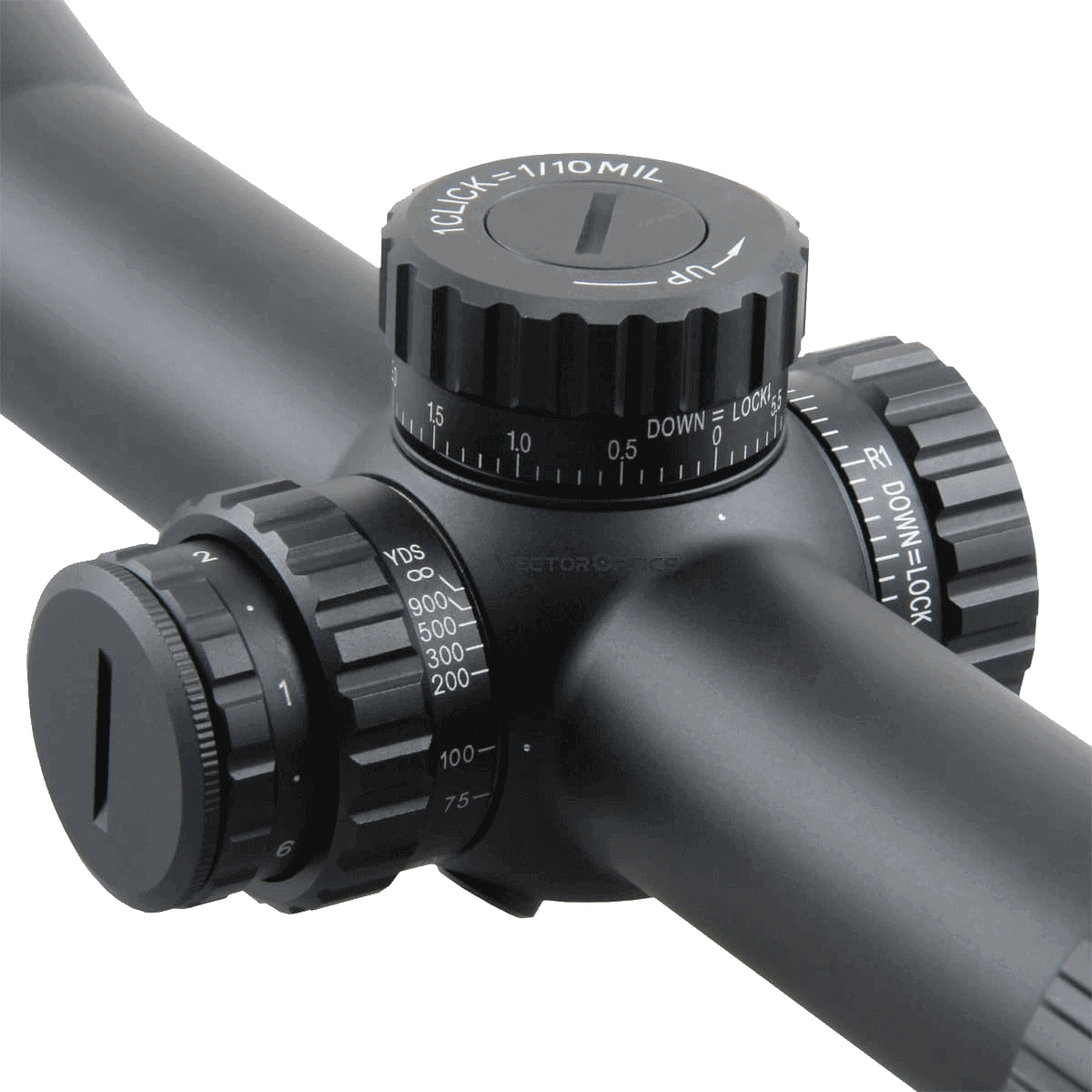 • Turret Lock System: Pull to adjust, press to lock. Includes two extra elevation turrets marked 1cm and 0.1 MRAD
