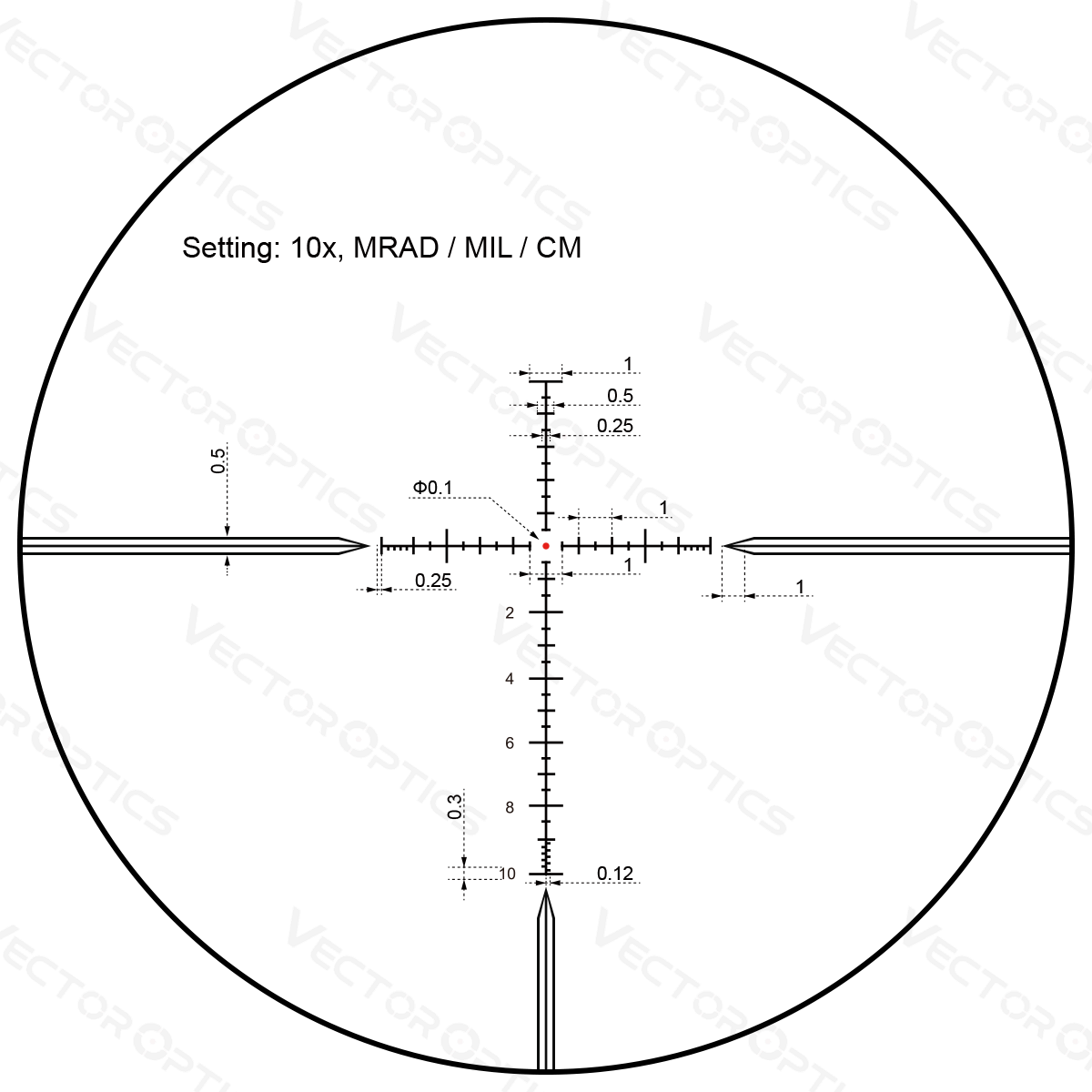 Click Value: 0.1 MRAD, 1/10 MIL, 1cm