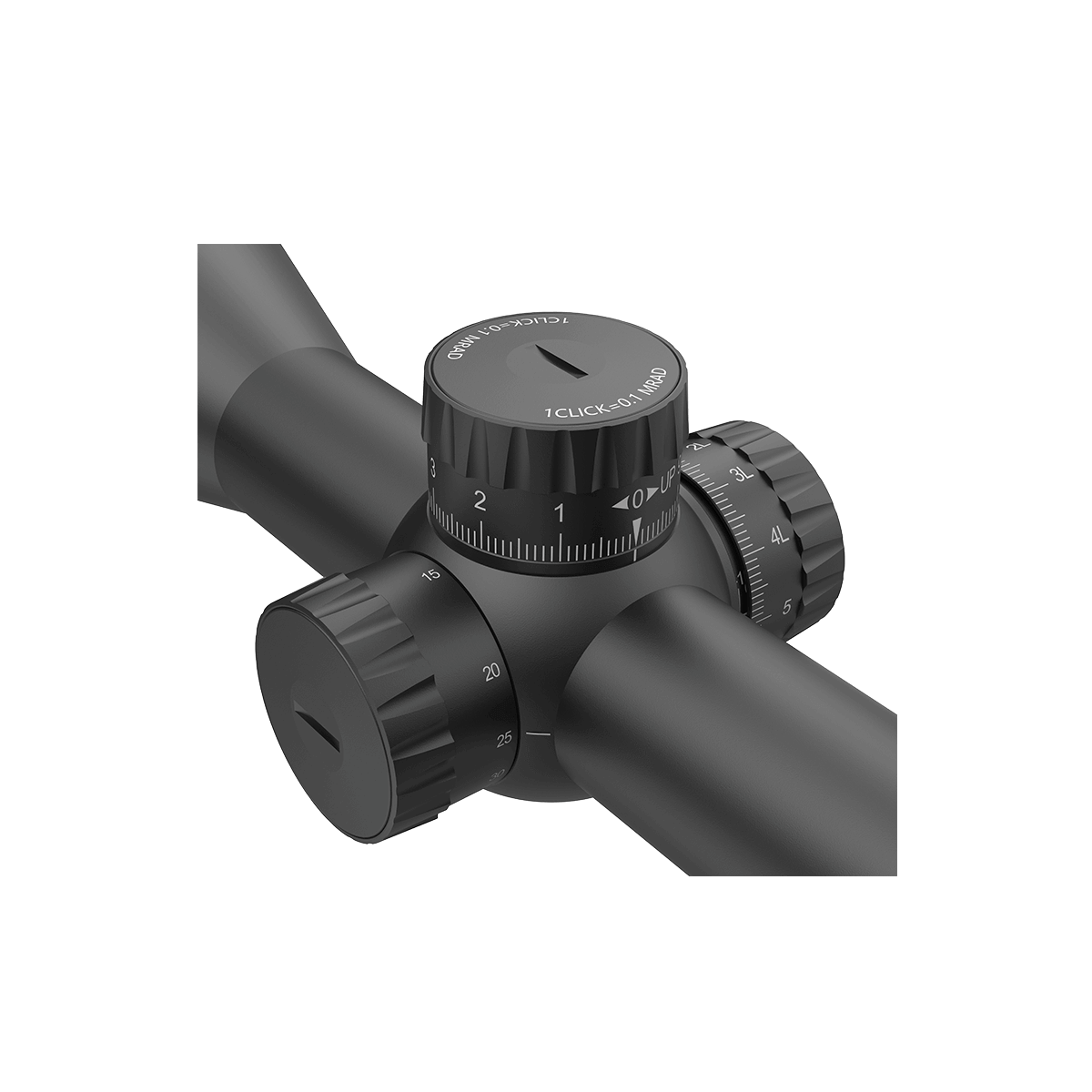 Precise Adjustments – 1/10 MIL clicks with audible feedback, 100 clicks per rotation; side focus from as close as 10 yards.